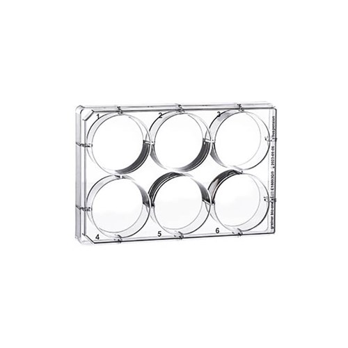 MULTIWELL PLATE FOR SUSPENSION CULTURE, 6 WELL, PS, CLEAR, LID WITH CONDENSATION RINGS, STERILE, SINGLE PACKED CELLSTAR® 6 Well Cell Culture Multiwell Plates. With hydrophobic surface for suspension culture cells and hybridoma cells Free of detectable DNase, RNase, human DNA, Non-pyrogenic Non-Cytotoxic High clarity and low autofluorescence Lid enables gas exchange with the lowest possible evaporation Single position lids to prevent cross-contamination Alphanumeric well coding Compatible with automated systems Easy-to-open packaging Suitable for all common instruments and for automation Max. volume per well: 16 ml working volume: 2 – 5 ml growth area / well: 9.6 cm2 Sterile