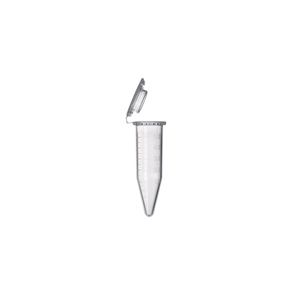 Reaction tube, 5ml with attached cap, PP, sterile, 1000pcs., 10 bags of 100 tubes each