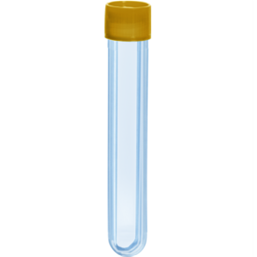 Tube 13 ml, 101 x 16.5 mm, PP, with assembled yellow cap, STERILE cap / PK 500