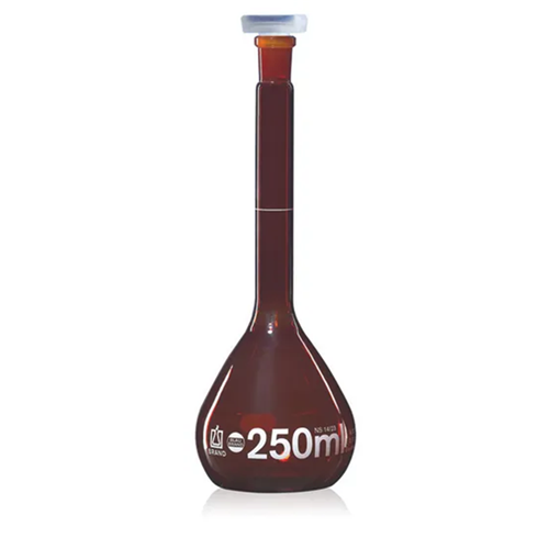 Vol. flask amber BLAUBRAND class A, 50ml, Boro 3.3, NS 12/21, PP-stopper / EA