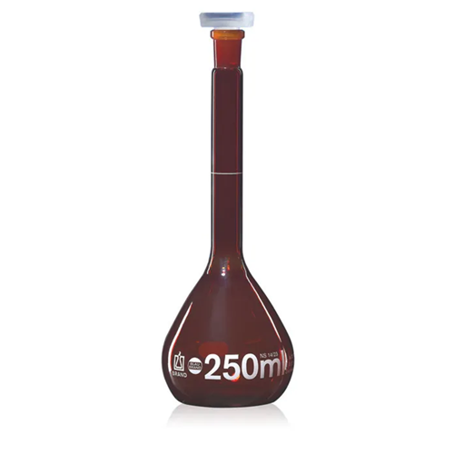 Vol. flask amber BLAUBRAND class A, 50ml, Boro 3.3, NS 14/23, PP-stopper / EA