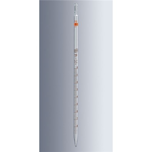 Pipettes with capacity graduation are used to dispense liquids. They are calibrated ”Ex” (to deliver): the imprinted volume refers to the delivered amount of liquid. Graduated pipettes for complete delivery are called serological pipettes.