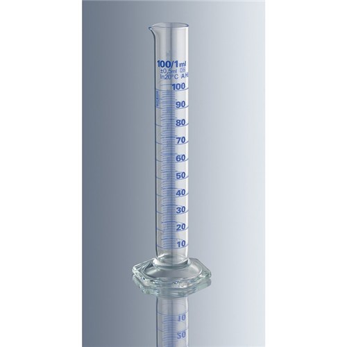 MAR2106021 - Graduated cylinders, 10ml borosilicate glass 3.3, Cl.A, tall shape, w spout, hex base / EA