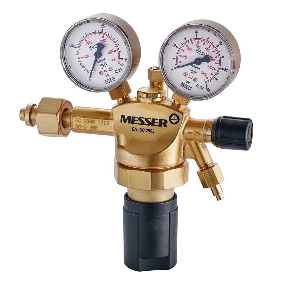 Oxygen pressure regulator for oxygen bottles with DIN 477 G3/4" threaded connectors.