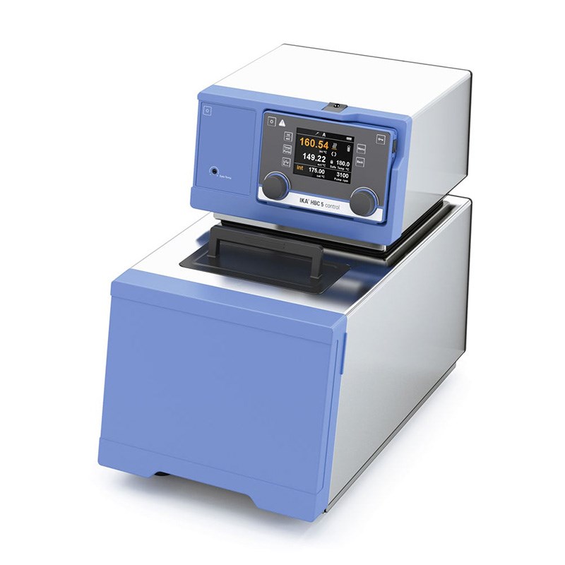 Heating bath circulator, 5-7 l, HBC 5 controlThe HBC 5 control heated bath circulator heats up to a max. temperature of 250 °C. It has a high quality stainless steel bath with a volume of 5 – 7 liters. The TFT display is in color and illustrates all relevant parameters. With just one key, the internal temperature regulation can be switched to external temperature regulation. The large surface of the radiator allows for an optimum heat exchange and a gentle heating process of the medium. Push and turn buttons allow for intuitive menu navigation. The menu comes in different languages. The bath has a front drain valve for safe emptying. In order to drain the bath, a hose is connected so there is no direct contact with the tempering fluid. With the unique WiCo Wireless Controller, the unit can be operated from a distance of up to 10 meters/30 ft.