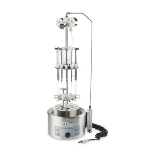 The 6 position N-EVAP’s ability to expand the sample size range with an optional large sample holder makes it an ideal instrument for laboratories that will be evaporating up to 6 samples at once and are using a wide range of sample flask outside diameters. The standard instrument fits samples with an outside diameter of 10-30 mm, and the optional large sample holder can accommodate samples with an outside diameter of 30-56 mm.