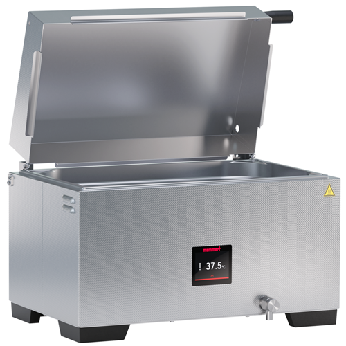 Perfect for everyday use in the laboratory: The high-quality stainless steel container with rounded corners is easy to clean and can be completely drained using the standard drain valve without residue left behind. The compact ergonomic design means the Memmert WTB fits on any laboratory table.
