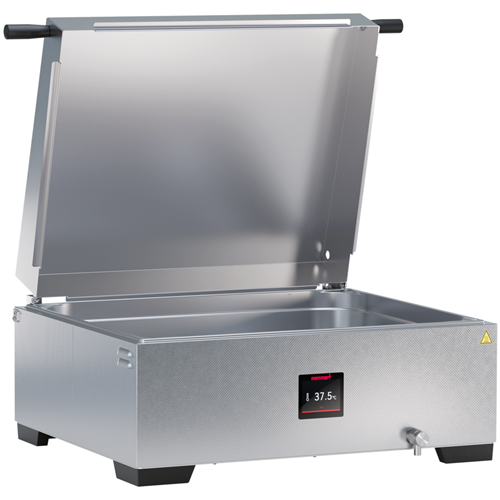 Perfect for everyday use in the laboratory: The high-quality stainless steel container with rounded corners is easy to clean and can be completely drained using the standard drain valve without residue left behind. The compact ergonomic design means the Memmert WTB fits on any laboratory table.