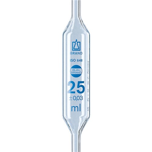 Bulb pipettes, 15ml, BLAUBRAND® class AS, 2 marks, blue printed scale, AR-GLAS®, DE-M / PK 6